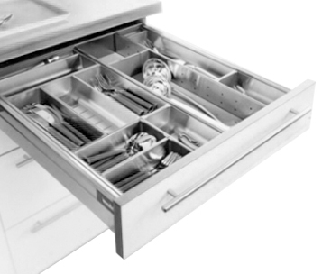 Фурнитура - это ручки, петли, выдвижные механизмы и прочее оборудование, упрощающее использование кухонного гарнитура. Мы используем фурнитуру известных Европейских производителей Blum (Австрия) и Hettich (Германия), рассчитанных на 100 000 открываний, это более 15 лет безотказной работы.
